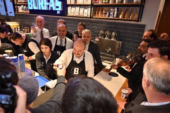 Konuşmalarının ardından, AK Parti Bursa Milletvekili Mustafa Varank ve Ayhan Salman, Bursa Büyükşehir Belediye Başkanı Alinur Aktaş ve İneögl Belediye Başkanı Alper Taban, Hükümet Meydanı’ndaki Burfaş Kafe’de barista önlüklerini giyerek gençlerin sipariş ettiği kahveleri hazırladı.