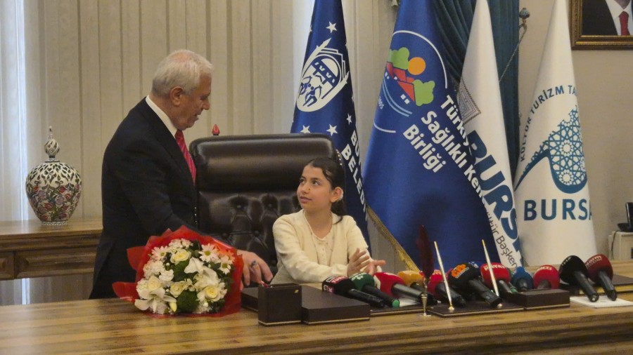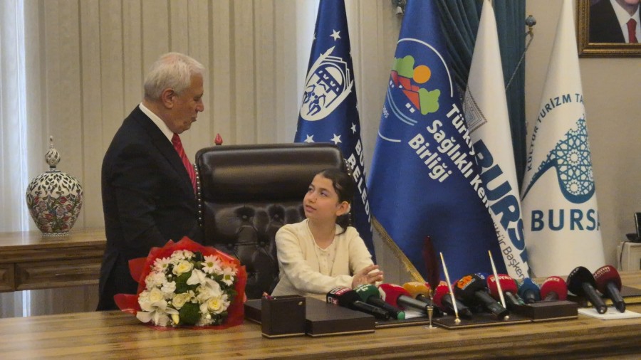 Bursa Büyükşehir Belediye Başkanı Mustafa Bozbey, 23 Nisan Ulusal Egemenlik ve Çocuk Bayramı kapsamında temsili olarak koltuğunu Tarihi Belediye Binası'nda devretti.