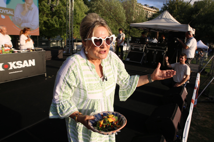Alanda kurulan ana sahnede Sahrap Soysal ve Melek Baykal’ın sunduğu ‘Gastro Sahne’ye konuk olan Başkan Mustafa Bozbey ve eşi Seden Bozbey, mutfak önlüğünü takıp Bursa’nın coğrafi tescilli ürünlerini kullanarak ‘Bursa Dudugiller Salatası’ hazırladı. Şef Ali Müfit Çağlayan’ın yönlendirmesiyle ürünleri işleyen Başkan Mustafa Bozbey, Bursa’nın sahip olduğu tatların tümünü önce Bursalıların, sonra tüm Türkiye’nin bileceğini söyledi. Sahrap Soysal ve Melek Baykal’ın yüksek enerjisiyle keyifli anlar yaşayan katılımcılar, Başkan Bozbey’in mutfaktaki hünerlerini de izledi. Hazırlanan salatanın tadına bakan Başkan Bozbey ve eşi Seden Bozbey, meyve sebzelerle yapılan salatayı Bursalılara da tavsiye etti. Program sonunda Başkan Bozbey ve konuklar, sahnede ‘Ayva çiçek açmış’ şarkısı eşliğinde oynadı.