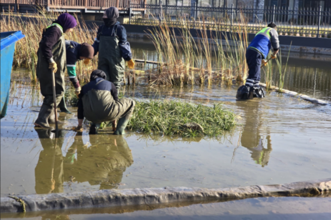 Büyükşehir Belediyesi Park ve Bahçeler Dairesi Başkanlığı Parklar ve Bahçeler Şube Müdürlüğü ekipleri, Yıldırım ilçesindeki Gökdere Millet Bahçesinde bulunan 1824 metrekarelik göletin biyolojik fonksiyonlarını tekrar geri kazanması için harekete geçti.