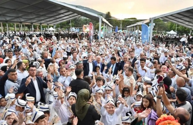 Konuşmaların ardından Başkan Bozbey, sünnet çocuklarıyla birlikte pasta kesti. Program, konser ve hediye dağıtımıyla sona erdi. - BÜLTEN