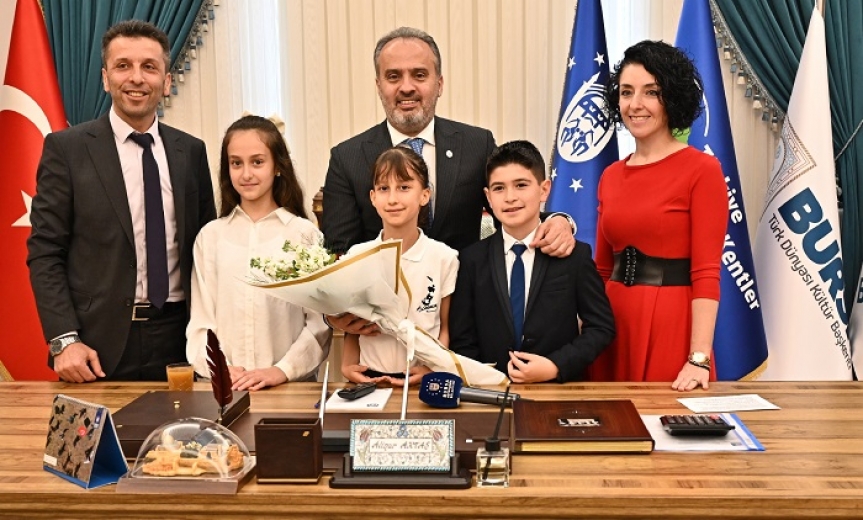 Ulusal Egemenlik ve Çocuk Bayramı nedeniyle tüm makamlar çocuklara kalırken, Bursa Büyükşehir Belediye Başkanlığı makamına da 3 yeni başkan oturdu. Makamını geleceğin başkanlarına devreden Bursa Büyükşehir Belediye Başkanı Alinur Aktaş, tüm çocukların bayramını kutladı.