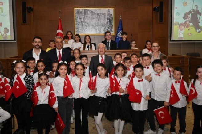 Ulusal Egemenlik ve Çocuk Bayramı etkinlikleri kapsamında 10 okuldan 64 öğrencinin katılımıyla 'Umutlu Yarınlar Çalıştayı' düzenlediğini hatırlatan Çocuk Meclisi Başkanı Yağız Vatansever, gün boyunca yapılan etkinlikte geleceğin Bursa'sını konuştuklarını söyledi. Hayal ettikleri ve olmasını istedikleri kente dair görüş ve düşüncelerini dile getiren çocukların çalıştay sonucunda ortaya çıkan öneri ve taleplerini Başkan Mustafa Bozbey ile paylaşan Yağız Vatansever, "Ulu Önder Gazi Mustafa Kemal Atatürk'ün biz çocuklara armağan ettiği 23 Nisan Ulusal Egemenlik ve Çocuk Bayramı'nda, geleceğe dair umutlarımızı ve hayallerimizi paylaşmak için bir aradayız. Yarının güçlü, adil ve mutlu şehirleri; bugünün düşünen, konuşan ve dinlenen çocuklarıyla kurulacak. Bursa'nın çocukları olarak, kentimizin geleceğine dair fikirlerimizi paylaşmak, bizlere verilen bu kıymetli söz hakkını en iyi şekilde kullanmak istiyoruz. Bu anlamlı günde bizleri dinlediğiniz ve sesimize değer verdiğiniz için teşekkür ederiz. Yaşasın 23 Nisan. Yaşasın Ulusal Egemenlik" dedi.