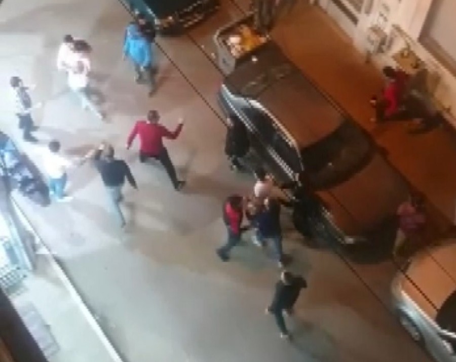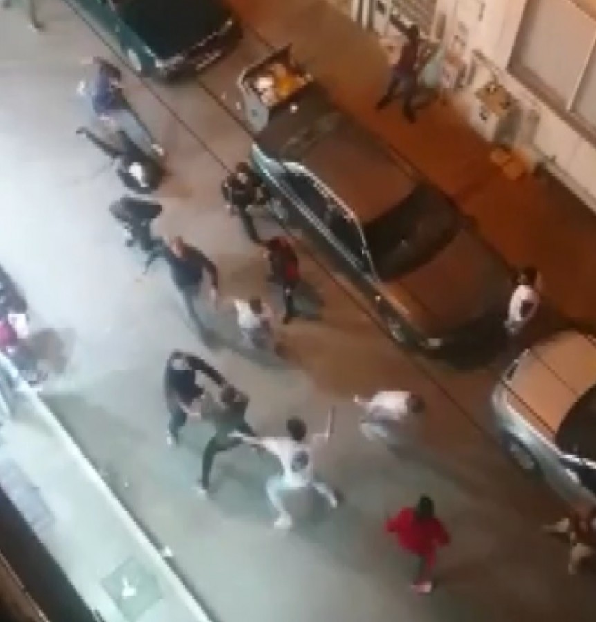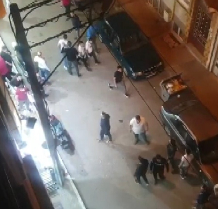Tarafların tartışması, kısa sürede kavgaya dönüştü. Kavgaya aileler de katılınca 30 kişilik grup, sokakta sopa, tekme ve yumruklar ile birbirine girdi. İhbarla bölgeye çok sayıda polis ekibi sevk edildi. Polislerin araya girmesi ile kavga sona ererken, Muhammet Ş. ile Mahmut N. gözaltına alındı. Şüpheliler, ifadelerinin ardından serbest bırakıldı. Kavga anı ise cep telefonu kamerasıyla saniye saniye kaydedildi.
