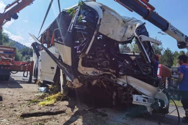 Kaza, dün saat 08.00 sıralarında İnegöl- Domaniç karayolu, Tahtaköprü Mahallesi Kocayayla mevkisinde meydana geldi. Kütahya'nın Tavşanlı ilçesinden Mudanya'ya gelen 43 ACT 702 plakalı tur otobüsü, iddiaya göre freninin boşalması sonucu kontrolden çıkıp, şarampole yuvarlandı. 20 metre sürüklenen otobüs, ağaca çarparak durdu. Kazada 5 kişi hayatını kaybetti, 38 kişi de yaralandı. Yaralılar, ambulanslarla İnegöl ve Domaniç'teki hastanelere kaldırıldı.