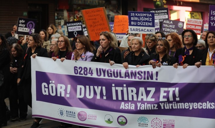 Kentte herkes için eşit ve güvenli bir yaşamı oluşturma hedefiyle faaliyetlerini sürdüren ve şiddet ile mücadele çalışmalarını merkeze alan Bursa Büyükşehir Belediyesi, yaşamın her alanında kadınların yanında olmaya devam ediyor. Bu kapsamda 25 Kasım Kadına Yönelik Şiddete Karşı Uluslararası Mücadele Günü dolayısıyla Bursa Büyükşehir Belediyesi ve Bursa Kent Konseyi, Osmangazi ile Nilüfer Kent Konseyleri Kadın Meclisleri tarafından farkındalık yürüyüşü gerçekleştirildi.