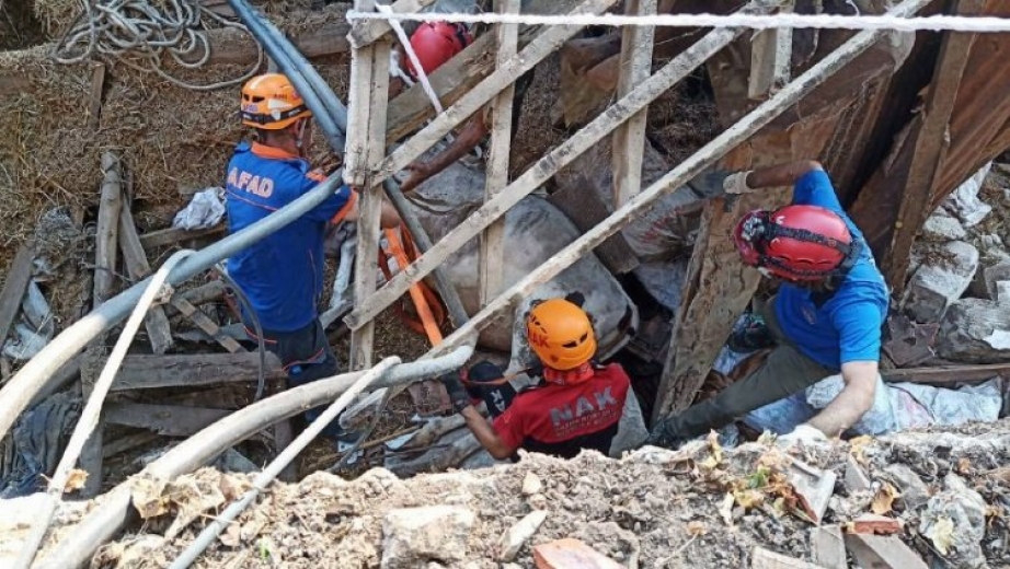 Sesleri duyan ahır sahibi durumu yetkililere bildirdi. İhbar üzerine bölgeye AFAD, MAK, ANDA, AKUT NAK, itfaiye ve kepçe sevk edildi.