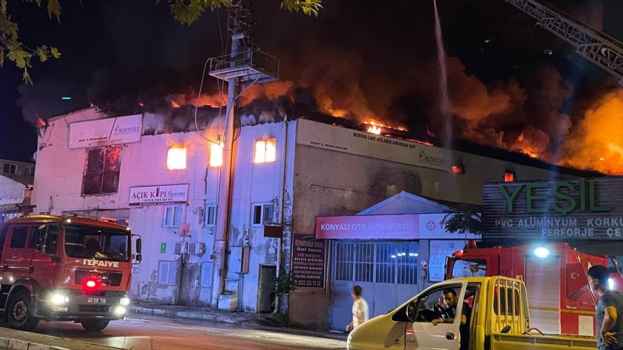 İçeride kimsenin bulunmadığı fabrikadan çıkan alevler, çevredeki birçok noktadan görülebiliyor. Ekipler yangını kontrol altına alabilmek için çalışmalarını sürdürüyor.