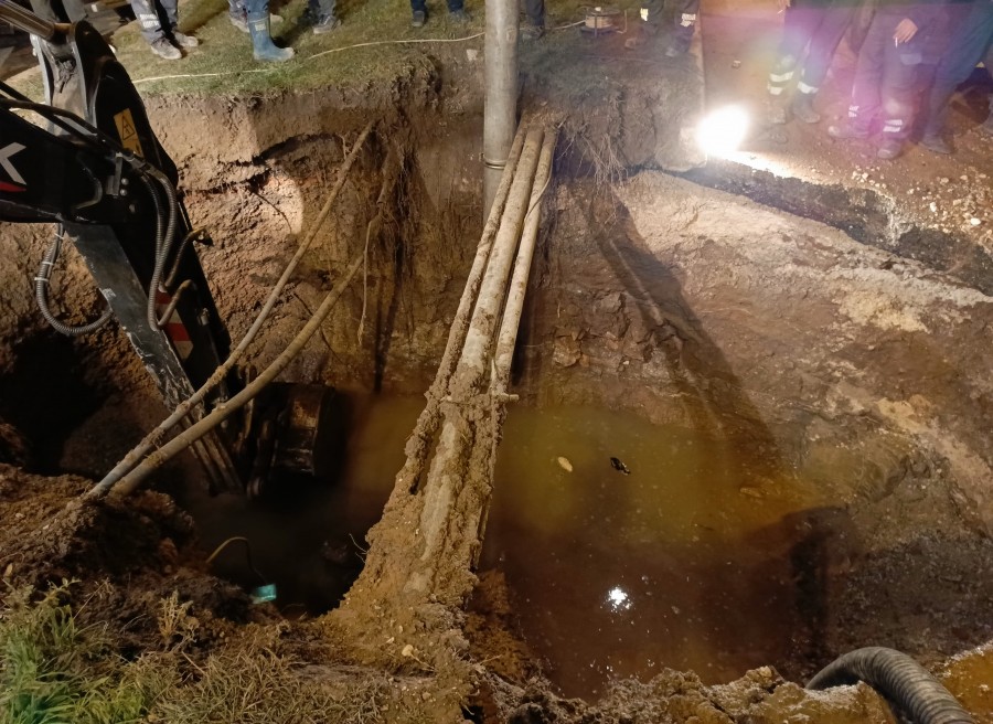 İhbar üzerine bölgeye gelen çok sayıda ekip patlayan boruyu bulmak için refüjü yaklaşık 10 metre kazdı.