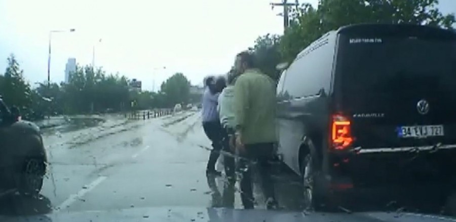 Yara almadan kurtulan çocuk, ağlayarak, yolun sağında park halindeki 34 EVJ 727 plakalı aracın yanına gitti. Çocuğun kapısı açılan araçtan düştüğünü fark eden kişi de koşarak yanına gittikten sonra alıp, yoluna tekrar devam etti. Bu anlar ise araç kamerasınca saniye saniye kaydedildi.