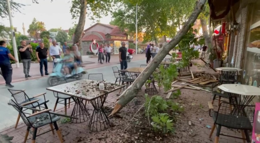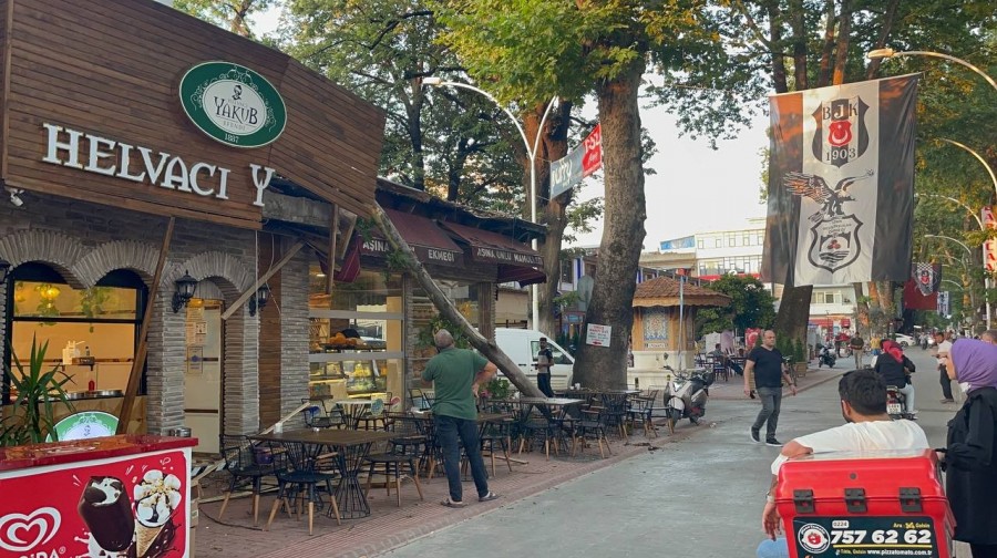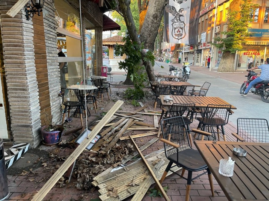 İznik Kılıçaslan Caddesi'nde asırlık dev çınar ağacından kopan dev dal parçası kafenin üstüne düştü.