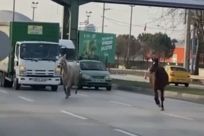 Başıboş atlar muhtemel bir kazaya sebep vermeden gözden kayboldu.