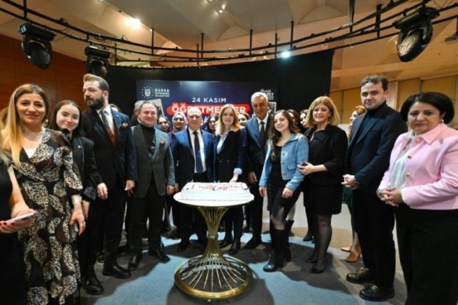 Bursa Büyükşehir Belediyesi bünyesindeki Bursa Yuvam, BUSMEK ve YKS kurslarında görevli öğretmenler, Merinos Atatürk Kongre ve Kültür Merkezi'ndeki 24 Kasım Öğretmenler Günü yemeğinde buluştu. Bursa Büyükşehir Belediye Başkanı Mustafa Bozbey ve eşi Seden Bozbey'in yanı sıra Büyükşehir Belediyesi Genel Sekreter Yardımcıları Ali Altunsoy, Mehmet Emin Direkçi ve Mehmet Yıldız, Dış İlişkiler Dairesi Başkanı Pınar Işıkyıldız ve BURFAŞ Yönetim Kurulu Başkanı Yalçın Işıkyıldız da bu özel günde öğretmenleri yalnız bırakmadı. Orkestra Şube Müdürlüğü sanatçılarının mini bir konser verdiği gecede, öğretmenler keyifli bir gün geçirdi.