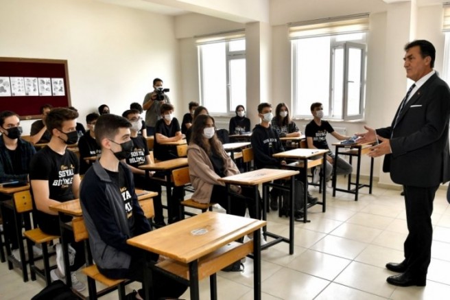 Yeni eğitim öğretim yılınınhayırlı olmasını dileyen Başkan Dündar, "Öncelikle bizleri sizlerle buluşturan müdürümüze ve öğretmenlerimize teşekkür ediyorum. Ben öğretmen değilim, bu nedenle de bugün burada bir ders işleyecek değilim. Hayata dair biraz sohbet etmek istiyorum. Sizler bu toplumun geleceğisiniz.Çalışıp başarılı olmak, bu milleti, bu ülkeyi daha ileri taşımak sizlerin elinde. Bunun için iyi bir eğitim ve disiplinli çalışmak şart.Çokokuyup, çok çalışarak, ders dışındaki kaynakları da okuyup kendinizi geliştireceksiniz. Çalışmak; hedef belirlemek ve bu hedef için mücadele etmek. Ertelememek, üşenmemek, vazgeçmemek. Bence, bütün mesele bu. Bunları yapıyorsak sonuca ve başarıya ulaşmış oluruz. Bunu yaptığınız zaman bizler de kendimizi başarılı sayacağız. Hepinize başarılar diliyorum" diye konuştu.