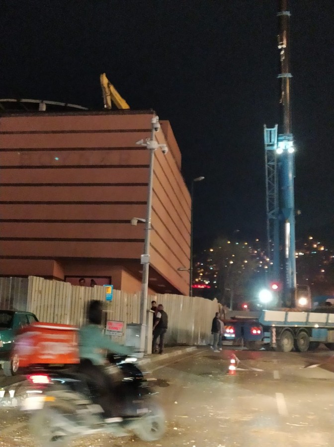 Bursa'da Cemal Nadir Caddesi üzerinde yer alan ve ocak ayında kararı alınan Boyner binasının yıkımına bu gece başlandı.