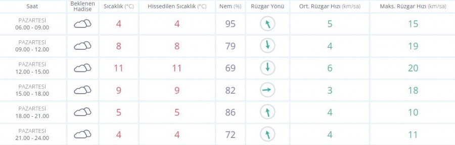 Parçalı ve çok bulutlu, aralıklı karla karışık yağmur ve kar yağışlı geçeceği tahmin ediliyor. Yağışların yer yer kuvvetli olması bekleniyor.