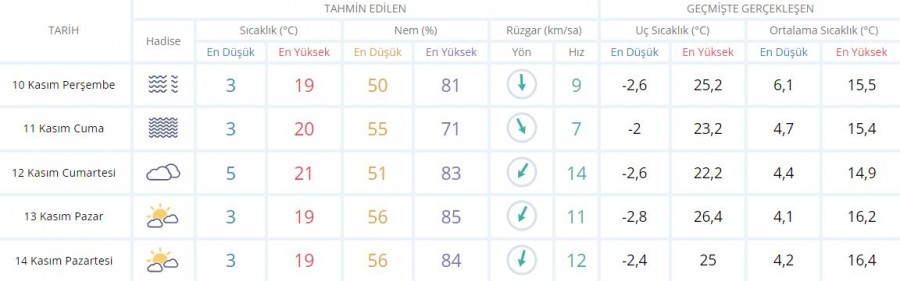 5 GÜNLÜK HAVA TAHMİNİ