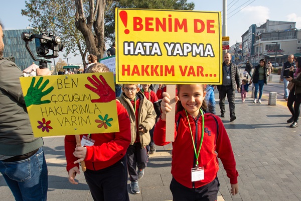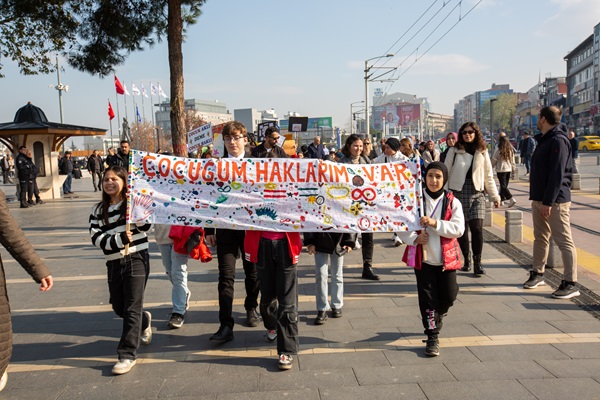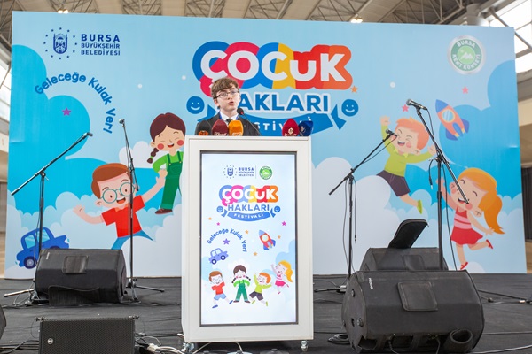 20 Kasım 1989 yılından bu yana Birleşmiş Milletler tarafından dünya genelinde çocukların karşı karşıya kaldığı hak ihlallerine dikkat çekmek amacıyla kutlanan Dünya Çocuk Hakları Günü dolayısıyla Bursa Büyükşehir Belediyesi ve Bursa Kent Konseyi tarafından ‘Dünya Çocuk Hakları Festivali’ düzenlendi. Kent Meydanı Atatürk Heykeli önünde buluşan yüzlerce anaokulu, ilkokul ve ortaokul öğrencisi, ellerinde çocuk haklarına dikkat çeken döviz ve pankartlarla Merinos Atatürk Kongre Kültür Merkezi’ne yürüdü. Merinos Fuaye Alanı’nda Bando Takımı’nın gösterisiyle başlayan buluşmada, Büyükşehir Belediyesi Genel Sekreter Yardımcısı Mehmet Yıldız, Bursa Kent Konseyi Başkanı Prof. Dr. Ertuğrul Aksoy, Büyükşehir Belediyesi Dış İlişkiler Dairesi Başkanı Pınar Işıkyıldız, Bursa Kent Konseyi Genel Sekreteri Elvan Atay Özkan, Bursa Kent Konseyi Çocuk Meclisi Başkanı Yağız Vatansever, aileler ve öğretmenler de çocuklara eşlik etti.