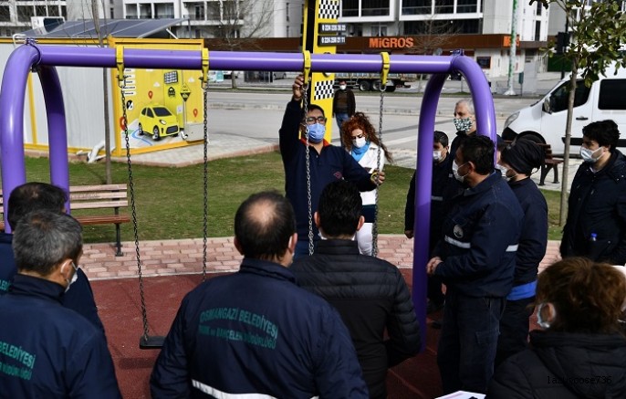 Türk Standartları Enstitüsü Muayene Gözetim Merkezi Başkanlığı’nda görevli TSE Uzman Yardımcısı Selçuk Demir ise, “Çocuklar parklarda oynarlarken, düşme, çarpma, oyun aletlerine el ve ayak sıkışması gibi birçok kaza yaşayabiliyor. Salıncaklar için parmak yakalama ve darbe alanı yetersizliği, kaydıraklar için çıkış yükseklikleri, eğimler, düğme yakalama, kıyafet yakalama şeklinde uygunsuzluklar oluyor. Bunlar maalesef çok yaygın. Aynı zamanda parklarla ilgili en büyük güvenlik zafiyetlerinden biri de zemin kaplamaları noktasında yaşanıyor. TS EN 1176 nolu standartlar kapsamında oyun alanlarında muayene yapıyoruz. Uzun uzun incelemelerde bulunuyoruz. TSE olarak bizler 5 yıldır bu eğitimi veriyoruz. Osmangazi Belediyesi’ne bu konuya hassasiyet gösterip bizden eğitim talep ettikleri için çok teşekkür ediyorum” diye konuştu.