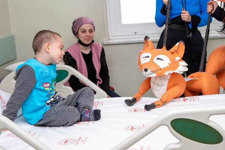 Odalarında sadece doktor ve hemşire görmeye alışkın olan nasta çocuklar, karşılarından ellerinde kocaman tilki ve kuş kuklası olan tiyatrocuların görünce büyük şaşkınlık yaşadı.