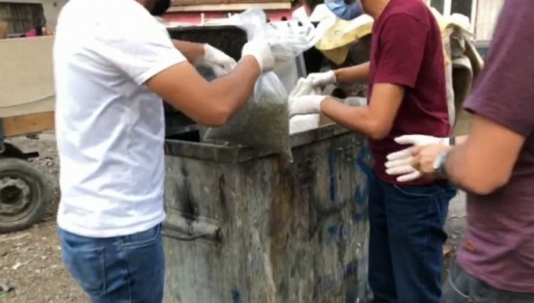 Emniyet ekipleri, uyuşturucu maddeleri çöpte saklayan şahıs veya şahısları yakalamak için çalışma başlattı.
