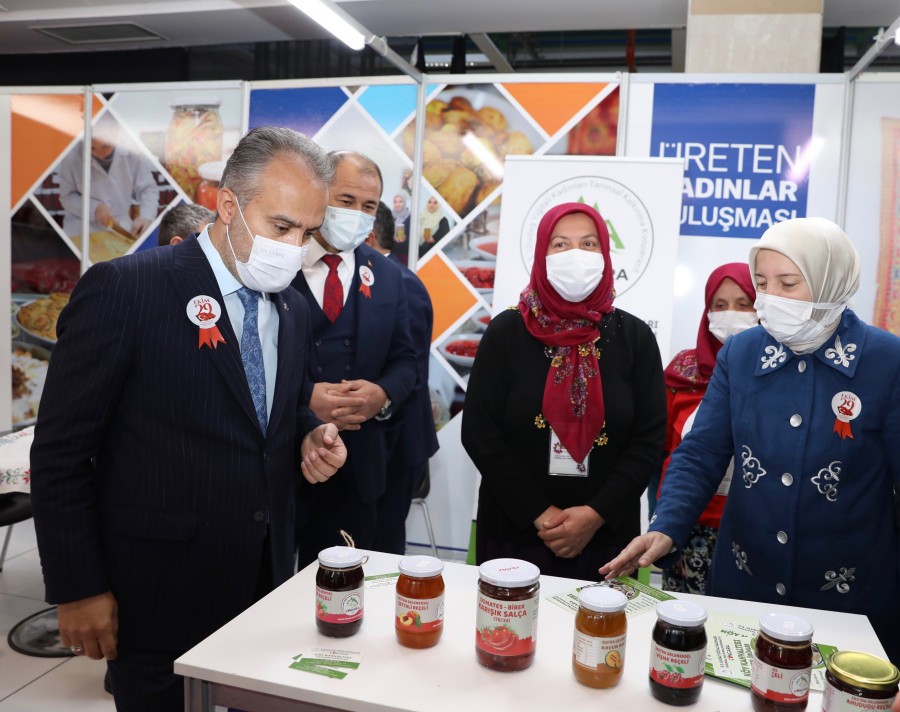 Konuşmaların ardından açılış kurdelesini kesen Başkan Aktaş ve protokol üyeleri tek tek stantları gezerek, üretici kadınlardan üretimleri hakkında bilgi aldı.