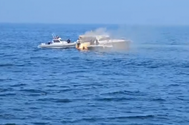 Polis ekiplerince yangın söndürülürken, tekneyi limana çıkarmak için başlatılan çalışmanın sürdüğü öğrenildi.