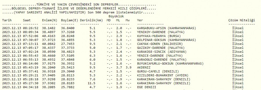 Deprem'in şiddeti 2.9 olarak ölçüldü.