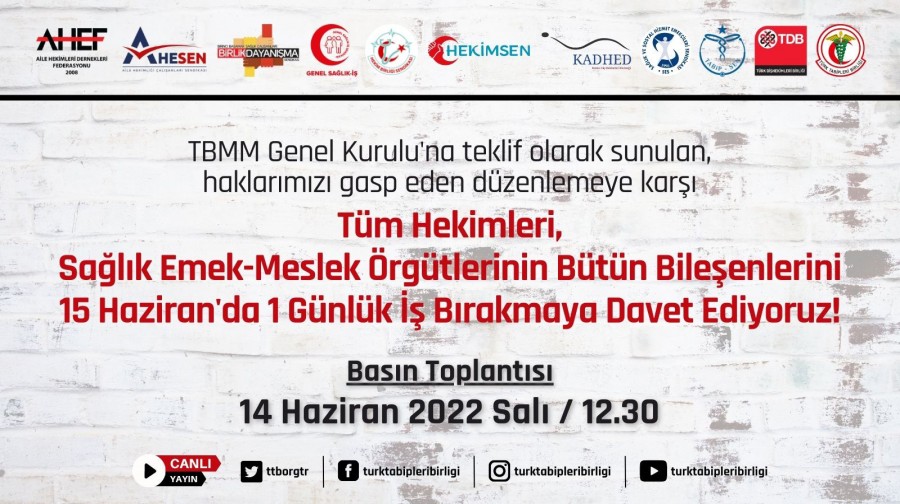 Diğer yandan açıklanan duyuruda 14 Haziran Salı günü saat 12:30'da internet üzerinden bir basın toplantısının da yapılacağı aktarıldı.