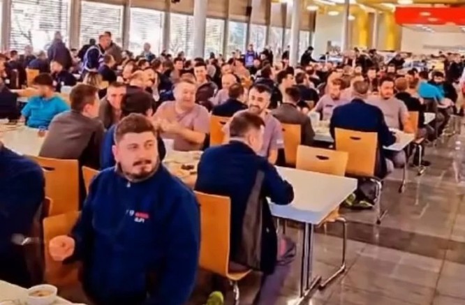 Yemekte bir araya gelen çalışanlar, yemekhaneyi tribüne çevirdi. Yemek kaşıklarıyla tempo tutan çalışanlar, 'Burası Bosch, cepler boş' diye slogan atarak taleplerinin karşılanmasını istedi.