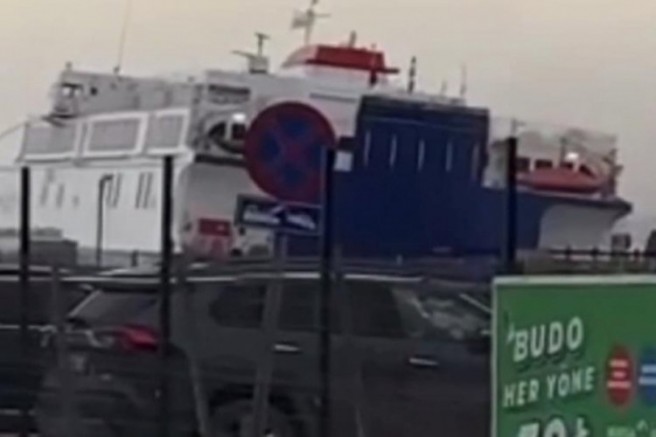 Yenikapı Mudanya arasında sefer yapan arabalı feribot, Mudanya ilçesindeki iskeleye yanaşacağı sırada şiddetli rüzgar sebebiyle zor anlar yaşadı.