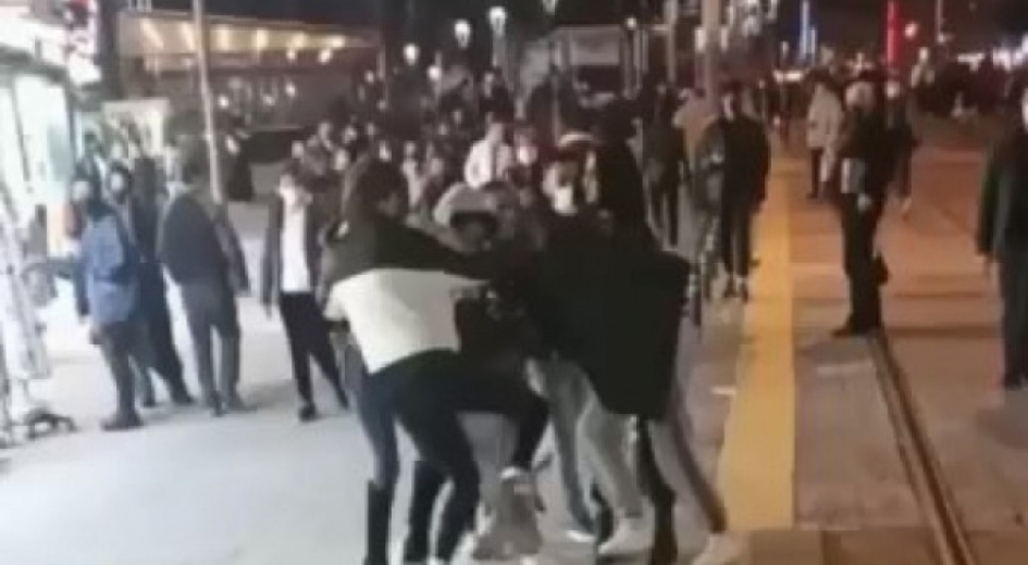 Kızlar herkesin gözü önünde saç saça baş başa kavga ettiler. Çevredekiler ise olan biteni izlemekle yetindi. Daha sonra 2 grup bölgeden ayrılarak uzaklaştılar. Bu anlar ise cep telefon kamerasına yansıdı.