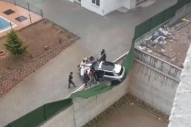 Edinilen bilgiye göre olay Nilüfer ilçesi Hasanağa Mahallesinde meydana geldi. Bir sürücü aracını sokak üzerinde döndürmek için geri manevra yapttığı sırada bir apartmanın tel vurana çarpıp kot fartı bulunan bahçesine düşme tehlikesi yaşadı. Askıda kalan araç bir süre sonra geriye kaymaya başladı. Evlerinin camlarına çıkan vatandaşlar sürücüye aracı terk etmesi için bağırdı. Olaya çevredeki komşuların müdahale etmesiyle araç geri kayıp aşağıya düşmekten kurtarıldı. O anlar bir vatandaş tarafından anbean kameraya kaydedildi.
