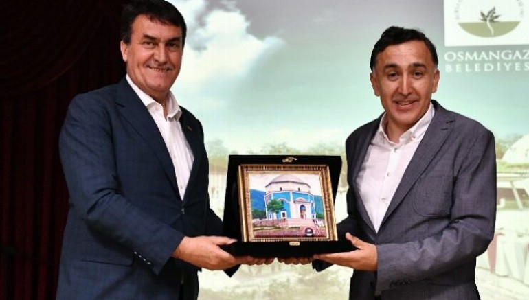 Program sonunda Bursa Gönüllü Kuruluşlar Platformu Başkanı İbrahim Güney, Bursa’ya kattığı önemli hizmetlerden dolayı Osmangazi Belediye Başkanı Mustafa Dündar’a bir tablo hediye etti.