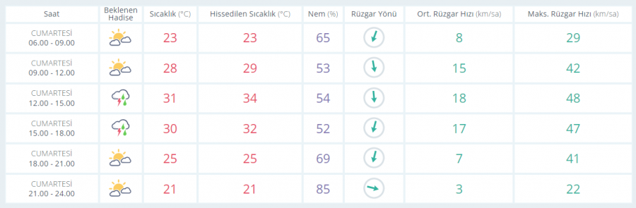 Meteoroloji Genel Müdürlüğü tarafından yapılan son değerlendirmelere göre yurt genelinin parçalı, yer yer çok bulutlu, İç Ege, Batı Akdeniz'in iç kesimleri, İç Anadolu'nun kuzey ve batısı, Karadeniz'in iç kesimleri, Doğu Anadolu'nun kuzey ve doğusu ile Aydın, İzmir ve Muğla'nın iç kesimlerinin yerel olmak üzere sağanak ve gök gürültülü sağanak yağışlı geçeceği tahmin ediliyor.