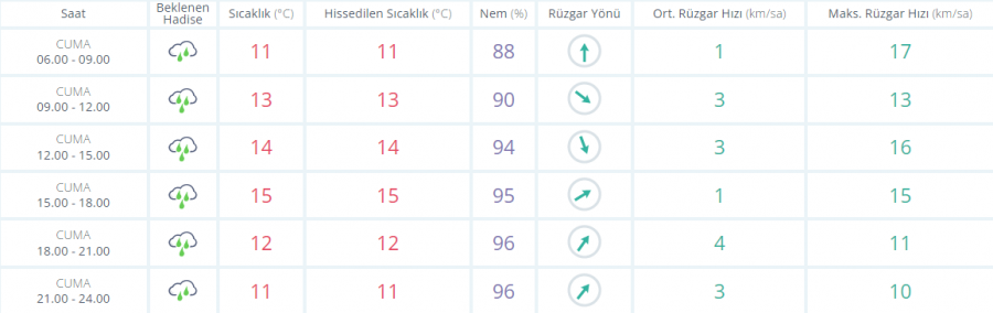 Çok bulutlu ve aralıklı sağanak yağışlı geçeceği tahmin ediliyor. Yağışların yerel olmak üzere kuvvetli olması bekleniyor.