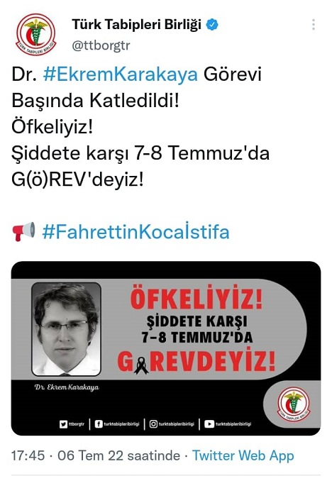Türk Tabipleri Birliği,Hekim-Sen gibi birçok sağlık meslek örgütü aldığı ortak kararla 7 ve 8 Temmuz tarihlerinde iş bırakacaklarını açıkladılar.