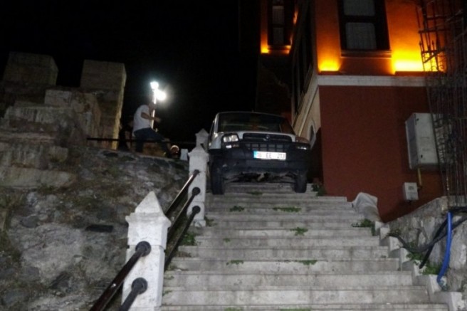 Olay, Bursa'nın Merkez Osmangazi ilçesi Tophane surlarında meydana geldi. Edinilen bilgiye göre 16 EE 213 plakalı hafif ticari bir araç Tophane surlarında duvar ile demir korkuluğun arasına sıkıştı.