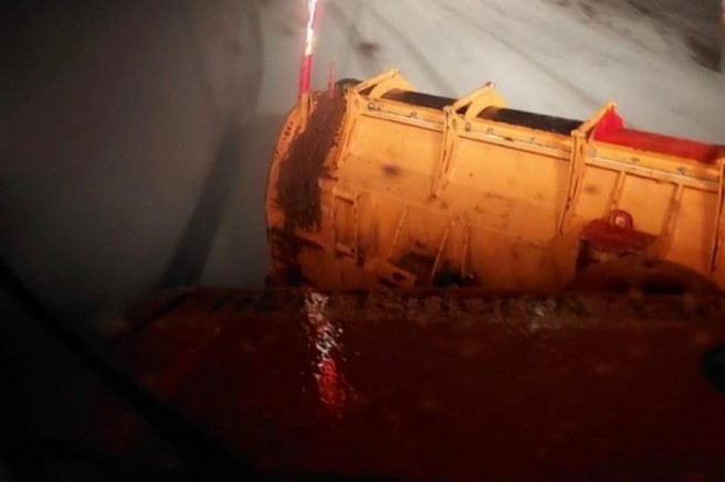 Karayolları Bölge Müdürlüğü ekipleri, yolda kar temizleme çalışmalarını sürdürüyor.