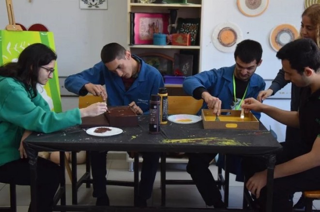Özel gereksinimli gruplara karşı farkındalık oluşturmak için düzenlenen etkinlik kapsamında üniversiteli gençler, özel gereksinimli çocuklarla birlikte mutfak atölyesinde kurabiye, sanat atölyesinde geri dönüşüm malzemelerinden süs eşyası yaptı.