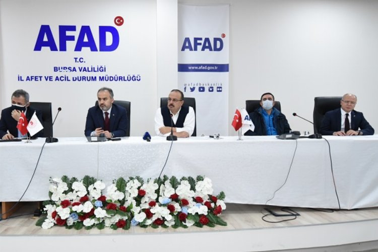BURSA (İGFA) - İl Afet ve Acil Durum Müdürlüğü (AFAD) koordinasyonunda yürütülecek karla mücadele çalışmaları, kriz merkezinde anlık olarak değerlendiriliyor. Gecenin ilerleyen saatlerinde AFAD'a gelen Bursa Valisi Yakup Canbolat ve Büyükşehir Belediye Başkanı Alinur Aktaş, kentteki mevcut durum ve riskli bölgelerde yapılacak çalışmalar hakkında ilgili kurum amirlerinden bilgi aldı.