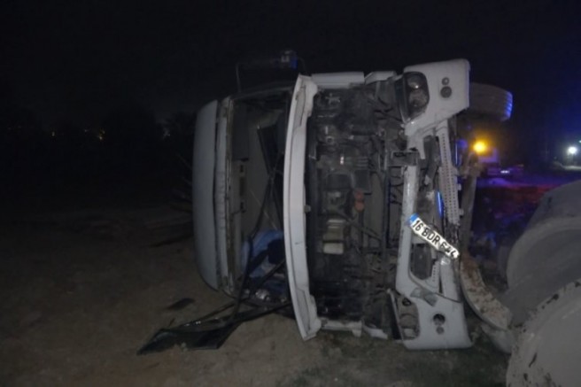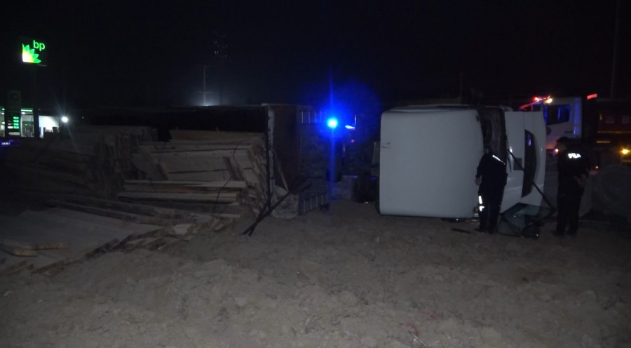 Çarpmanın etkisiyle kontrolden çıkan kereste yüklü tır, yol kenarındaki tarlaya uçarak yan yattı. Şoför, yan yatan tırdan çıkarak kaçtı. İhbar üzerine olay yerine polis, sağlık ve itfaiye ekipleri sevk edildi. Tır, çekici ile kaldırılırken polis, olayla ilgili tahkikat başlattı.