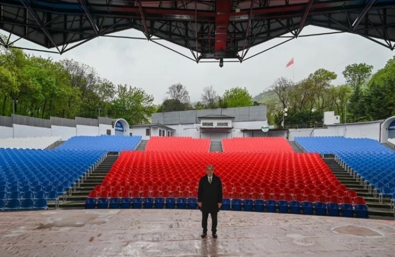 Bursa Büyükşehir Belediye Başkanı Alinur Aktaş da beraberindeki Bursa Kültür Sanat ve Turizm Vakfı Genel Sekreteri Fehim Ferik ile birlikte tamamen yenilenen Açıkhava Tiyatrosu’nu gezdi. Açıkhava Tiyatrosu’nun Bursalıların hayatında özel bir yeri olduğunu hatırlatan Başkan Aktaş, “Buradan kimler geldi, kimler geçti. Bu mekânın yapımında, bugüne kadarki süreçte emek verenlere şükranlarımı sunuyorum. Ayrıca burada sahne alan ve şu an hayatta olmayan Zeki Müren, Yıldırım Gürses, Müzeyyen Senar, İlhan İrem, Barış Manço, Cem Karaca, Neşet Ertaş ve adını sayamadığım birçok değerimize Allah’tan rahmet diliyorum. Bursa’nın ‘Harbiyesi’nde, bu yıl da festivalimizin 61.’sini gerçekleştireceğiz. Birbirinden ünlü sanatçılarımızı hemşehrilerimizle buluşturacağız. Biz de şehrin hafızası olan bu önemli mekânın uzun zamandır yapılamayan restorasyonu gerçekleştirdik. Bursalı sanatsever dostlarımızı mayıs ayından itibaren yenilenen Açıkhava Tiyatrosu’nda ağırlayacağız. Bu güzel mekanı korumak, kollamak hem sanatseverlerimizin hem hemşehrilerimizin görevidir diye düşünüyorum. Açıkhava Tiyatromuzun daha uzun yılar Bursa’nın kültür sanat hayatına hizmet etmesini temenni ediyorum” diye konuştu.