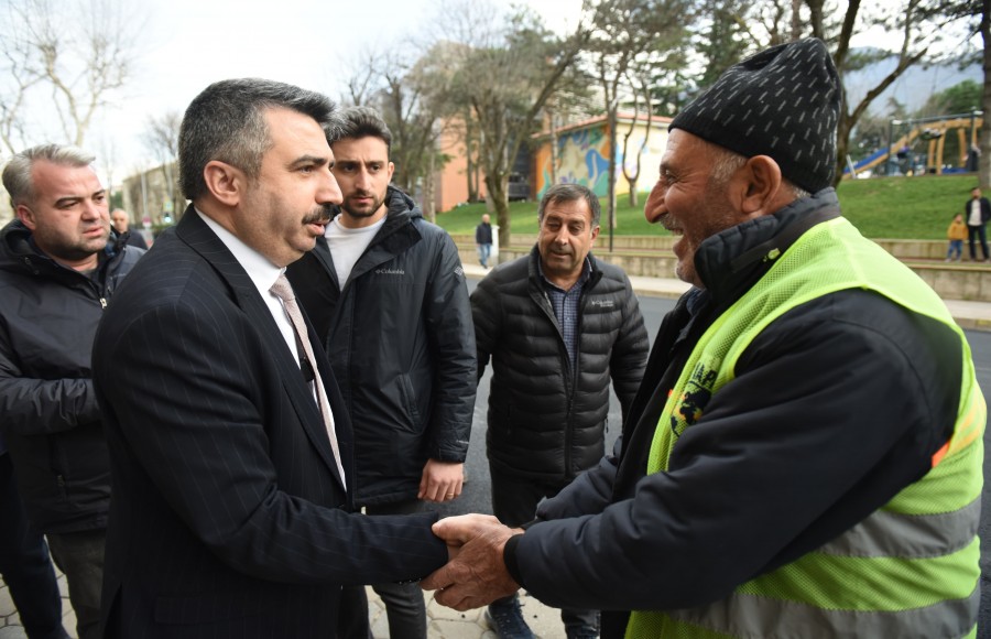 Bölge halkının uğrak mekânı haline gelen Ahmet Taner Kışlalı Meydan Parkı'ndaki çocuklar ve aileleri ile sohbet eden Başkan Yılmaz, ardından asfalt serim çalışmalarında sona gelinen 16 bin metrekarelik alana sahip Kurtuluş Caddesi'ndeki çalışmaları yerinde inceledi.