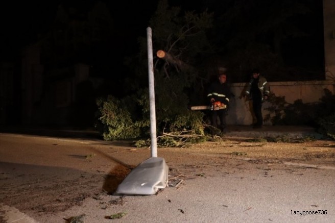 Merkez Osmangazi ilçesi Çekirge Caddesi üzerinde bulunan ağaç ve elektrik direği kuvvetli lodos nedeniyle devrilerek yola düştü.