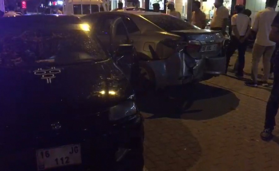 Sürücü Bayram Ülezyönetimindeki 16 JG 112 plakalı otomobil sürücüsünün kontrolünden çıkarak savruldu. 40 metre sürüklenen otomobil kaldırım üzerindeki 2 yayaya ardından park halindeki 16 KKL 13 plakalı otomobile ve 16 AIL 129 plakalı Kamyonete çarparak durabildi.