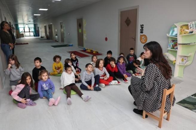 Nilüfer Belediyesi İklim Değişikliği ve Sıfır Atık Müdürlüğü'nden biyolog Melahat Kaynak ve çevre mühendisi Ufuk Ekinci, çocuklara su kaynaklarını koruma, bilinçli su tüketimi ve su tasarrufu alışkanlığı kazanmaları konusunda bir sunum gerçekleştirdiler. Biyolog Melahat Kaynak "Küçük Yağmur Damlası" kitabından kesitler okuyarak, çocuklara günlük hayatta su tasarrufu konusunda pratik bilgiler de sundu.