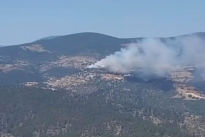 Ormanlık alanda çıkan ve rüzgarın etkisiyle büyüyen yangını gören vatandaşlar itfaiye ekiplerine haber verdi.