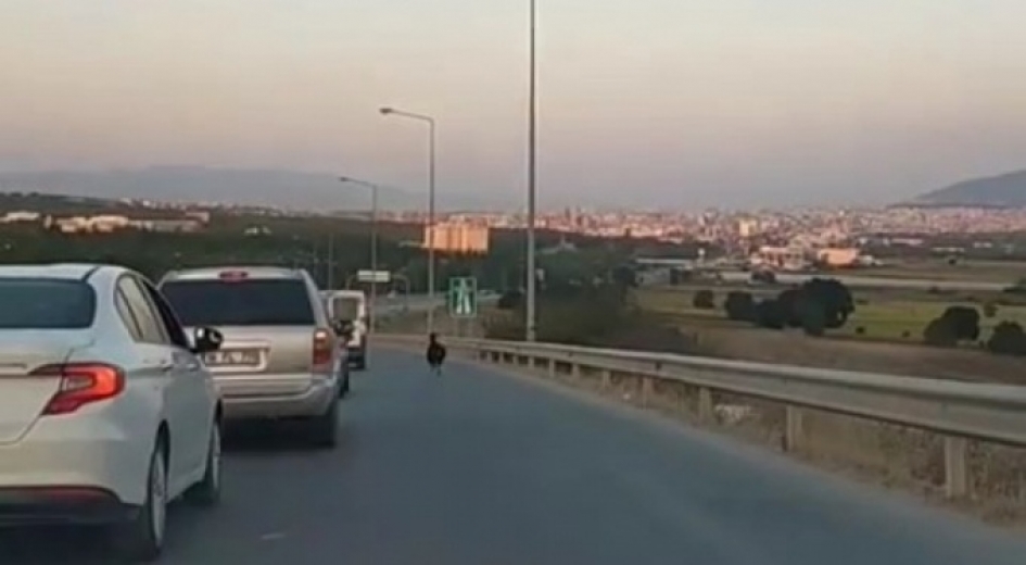 Bursa otobanının Görükle çıkışında araçlarla yarışan keçi, sürücülere zor anlar yaşattı. Keçinin araçlarla neredeyse aynı hızda koştuğu anlar dikkatlerden kaçmadı. O anlar ise cep telefonu kamerasına saniye saniye yansıdı.