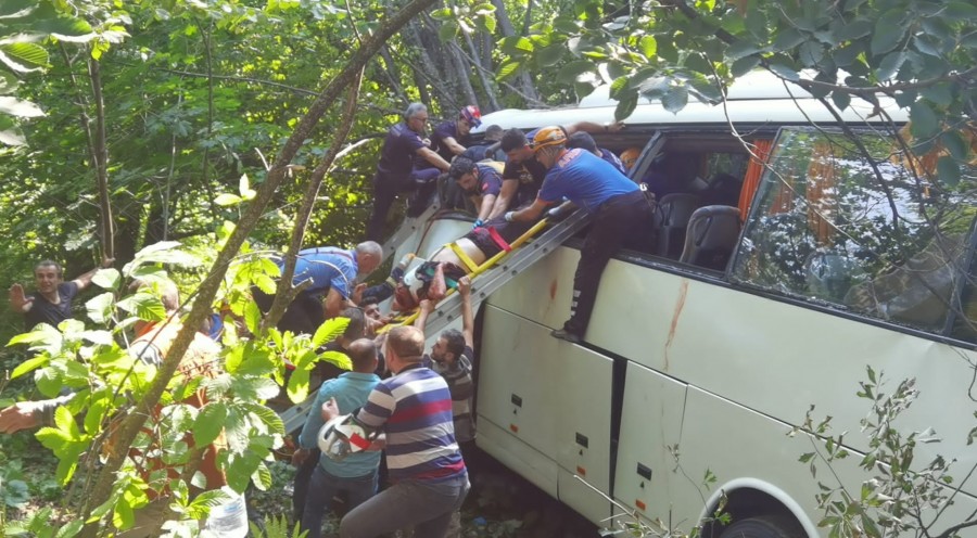 Kaza, sabah saatlerinde Bursa-Ankara yolu Domaniç mevkiinde meydana geldi. Edinilen bilgiye göre, Kütahya Tavşanlı'dan Bursa'nın Mudanya ilçesine gezi için yola çıkan Kenan Yiğit idaresindeki 43 ACT 702 plakalı tur otobüsü Domaniç mevkiinde şarampole yuvarlandı.
